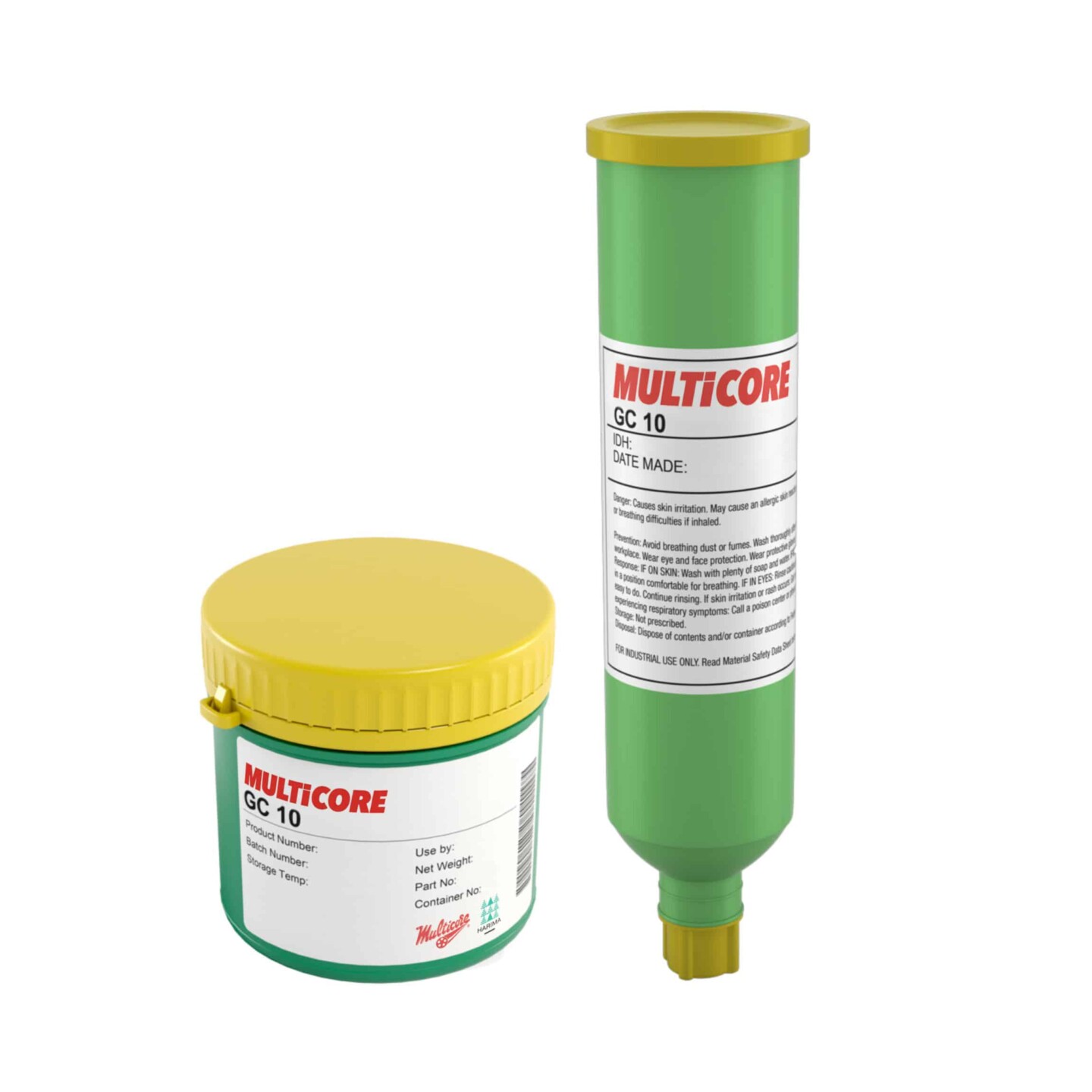 Die Lotpaste GC 10 ist eine halogenfreie, no clean Lötpaste die im gegensatz zu anderen Lötpaste nicht gekühlt werden muss. Sie bietet eine ausgezeichnete Beständigkeit bei hoher Luftfeuchtigkeit. Sie bietet eine geringer Porenbildung, die speziell für zusätzliche Langzeitstabilität über einen breiten Temperaturbereich entwickelt wurde. Die durch die neuartige Formulierung erzielte verbesserte Pastenstabilität erhöht sowohl die Ausbeute bei der Anwendung vor Ort als auch die Online-Pastenausnutzung. GC 10 zeigt außerdem eine ausgezeichnete Lötbarkeit beim Reflow-Löten sowohl in Luft als auch in Stickstoff auf einer Vielzahl anspruchsvoller Oberflächenbeschichtungen und Komponentenmetallisierungen, darunter Immersions-Ag, OSP-Cu, ENIG und CuNiZn. Es unterstützt ein ausgezeichnetes Reflow-Löten, um die branchenweiten Herausforderungen von HiP und NWO zu bewältigen. Die neue Flussmittelchemie schützt die Lötstelle länger, verbessert die Koaleszenz und optimiert die Benetzungsleistung, wodurch sehr glänzende Lötstellen entstehen. GC 10 ist für die Verwendung mit branchenüblichen SAC-Legierungen geeignet.
